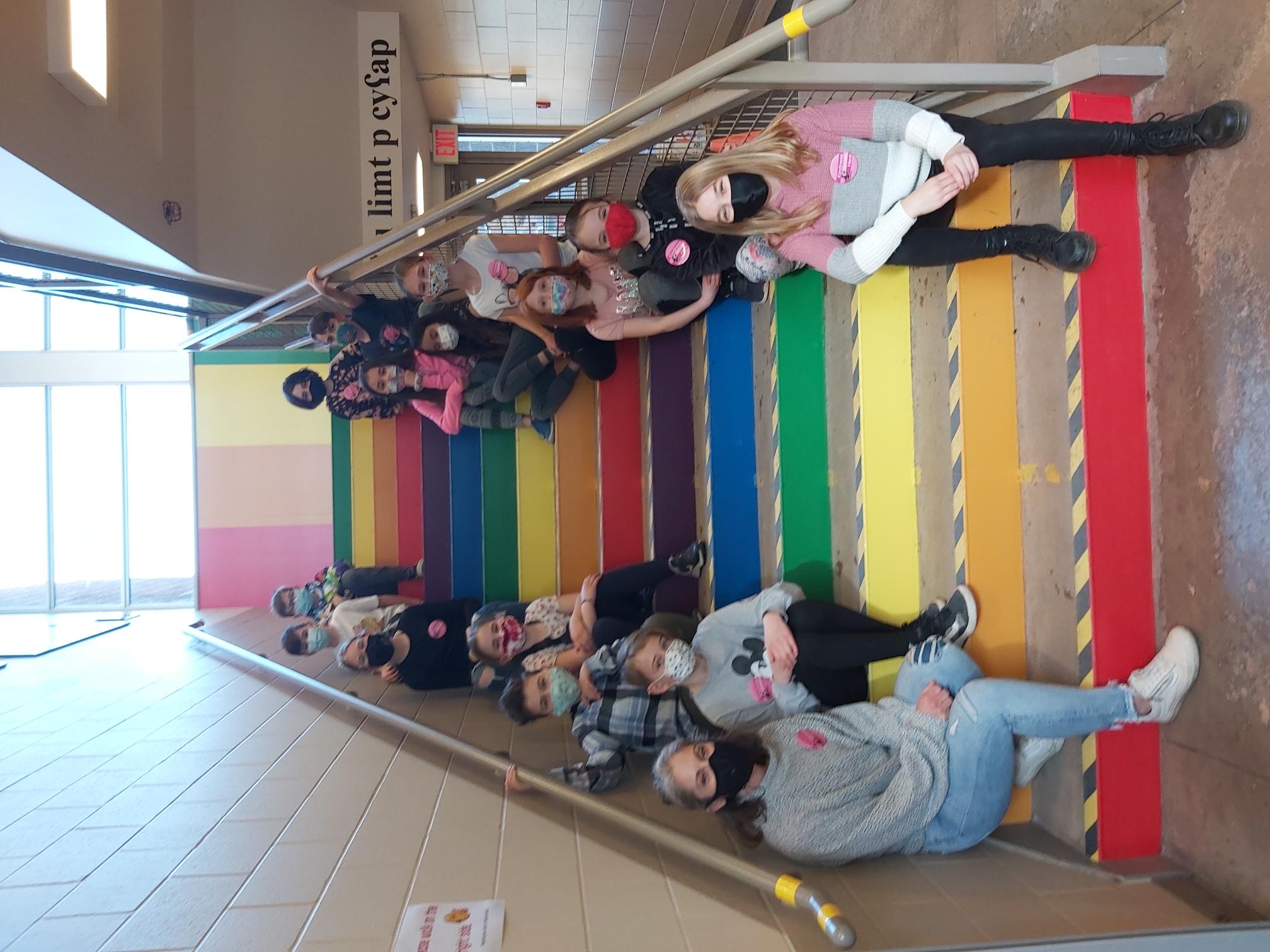 February 8th, 2022: Our "Rainbow Staircase" is unveiled to create a more welcoming and inclusive foyer to our learning community.